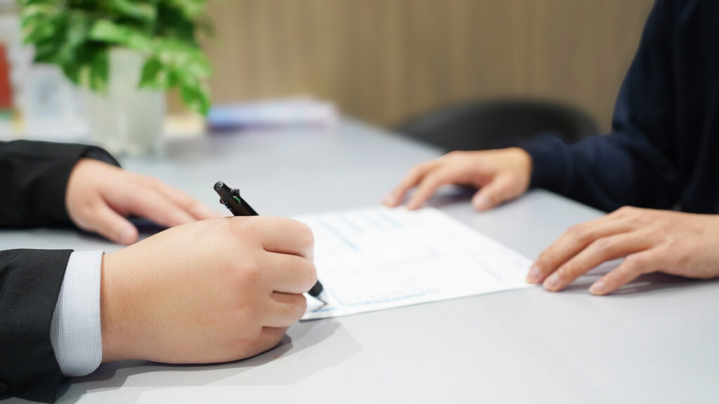 加入申込書に署名・捺印をしていただきます。