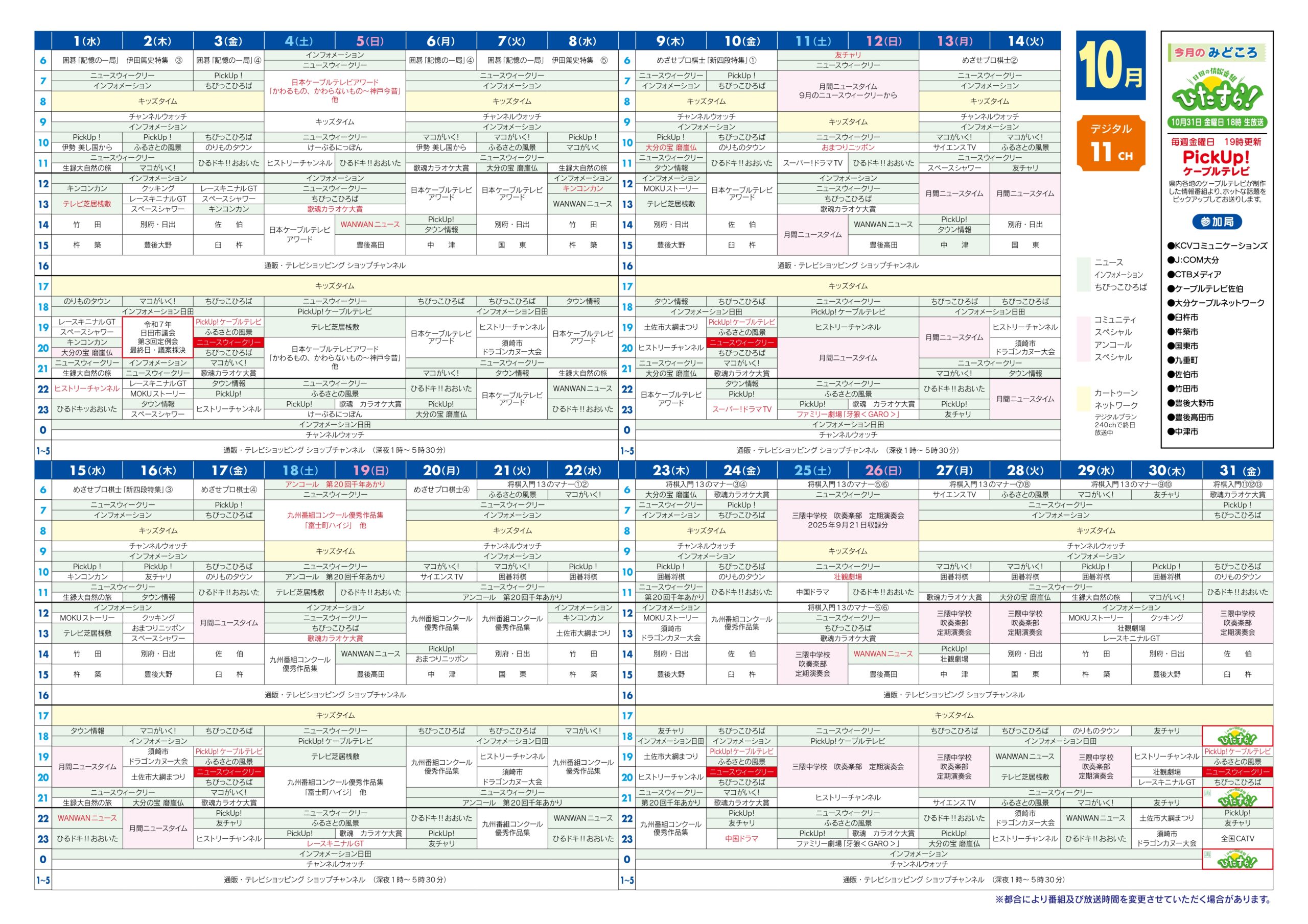 10月1日~31日の番組表